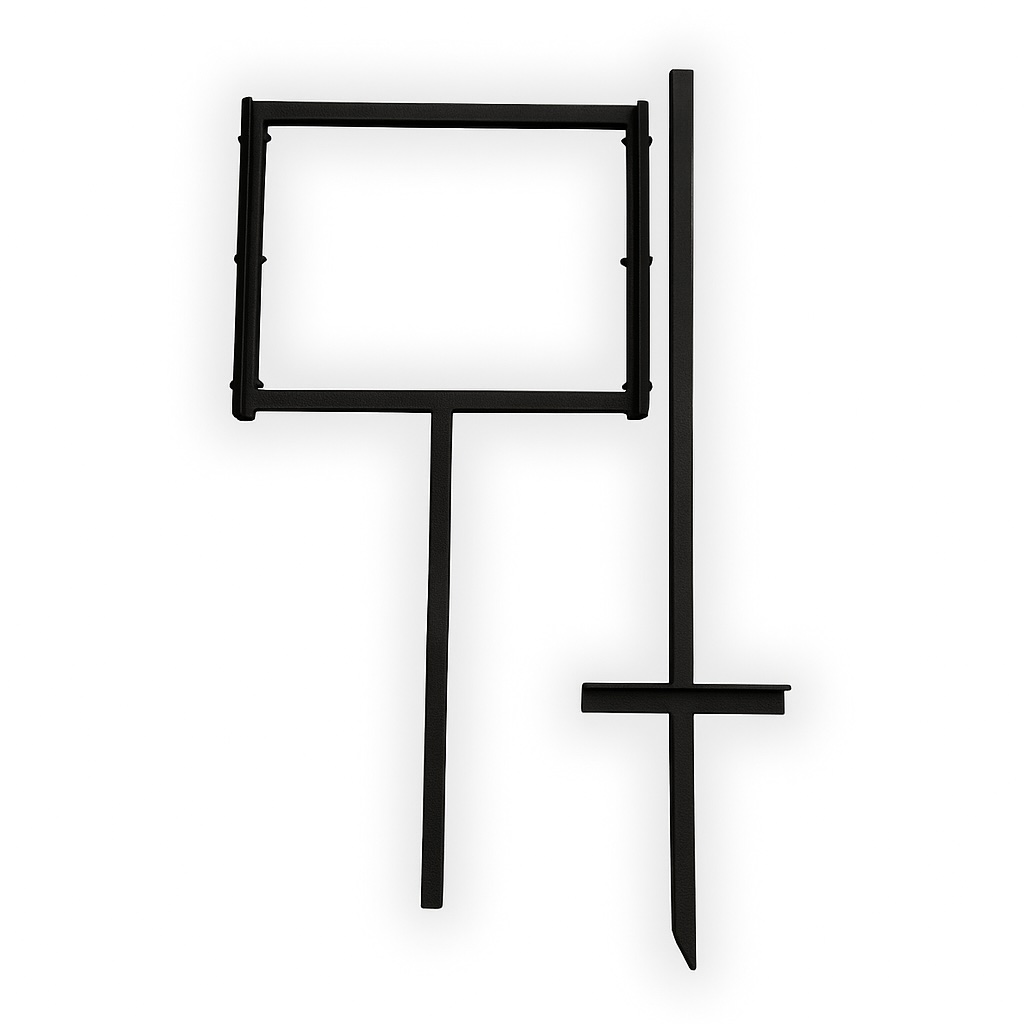 Tuinframe zwart om de verkoopborden in te schuiven