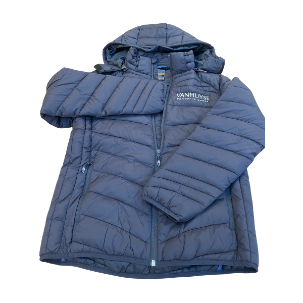 VanHuyse donsjas dames. Houd jezelf warm en stijlvol met onze VanHuyse donsjas, uitgevoerd in een klassieke navy blauwe kleur. De jas is voorzien van een comfortabele capuchon en biedt optimale bescherming tegen kou, wind en regen. Perfect voor dagelijkse activiteiten en ideaal om jouw professionele uitstraling te versterken.