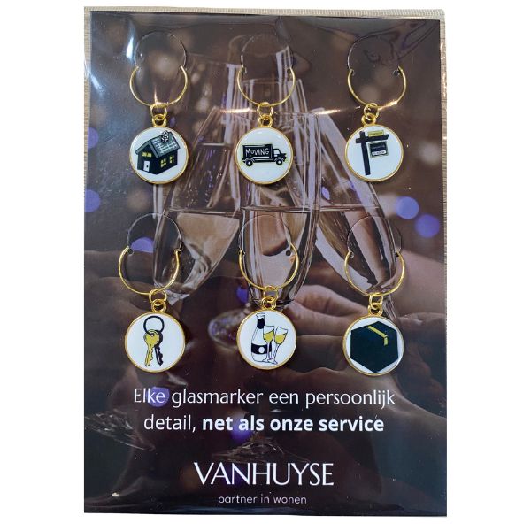 Ideaal voor een housewarming, diner of als origineel cadeau bij een verhuizing. De ringetjes schuif je eenvoudig om de voet van het wijnglas en blijven stevig zitten, zonder het glas te beschadigen.